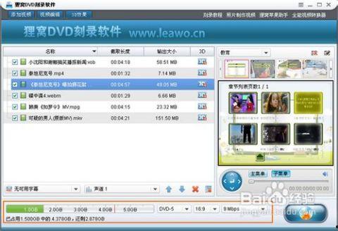 2. 视频时长:DVD的容量有限,一般来说,一张DVD-R可以刻录约4GB的视频,所以请确保你的视频时长不超过这个限制。